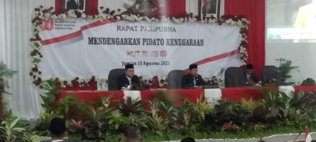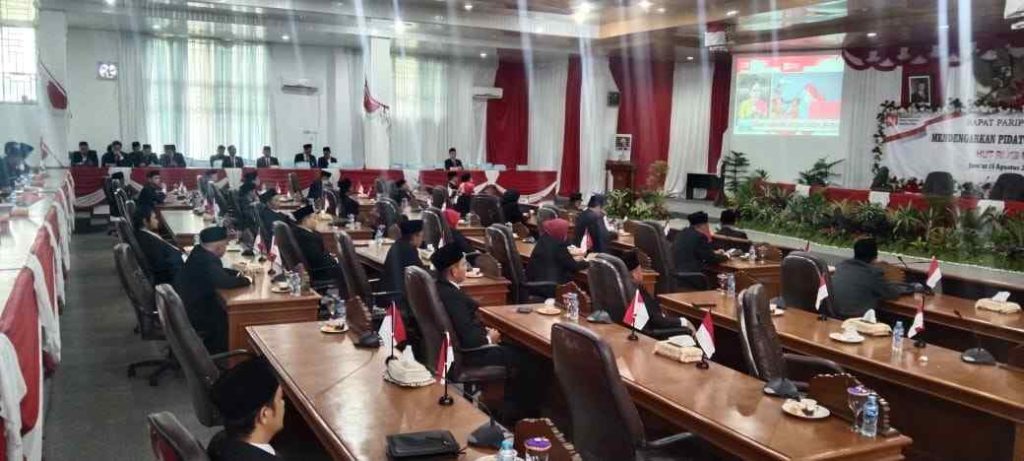 GETARBABEL.COM, BANGKA – DPRD Kabupaten Bangka Jum’at (15/08/2025), menggelar rapat paripurna dalam rangka Mendengarkan Pidato Kenegaraan Hari Ulang Tahun Republik Indonesia yang ke 80 , rapat dipimpin oleh wakil ketua I DPRD Hendra Yunus,SE dan dihadiri oleh Bapak Pj.Bupati Bangka Jantani Ali,ST, segenap FORKOPIMDA , BIN, Plt Sekretaris Daerah, Asisten, Kepala Dinas,kantor, Camat, Lurah, Darma Wanita, Pasukan Pengibar Bendera, Insan Pers serta para undangan lainnya.